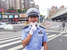 8月14日,长沙,执勤的辅警车程。图/受访者提供