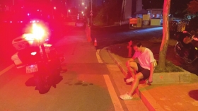 8月31日21时25分左右,长沙雨花交警大队四中队接到路人报警,洞井路附近,一名男子骑电动自行车摔伤,坐在路边一时无法动弹,辅警车程立即赶往现场。经询问得知,该男子在驾驶电动自行车时,突遇一辆小车掉头,他因紧急避让发生车辆侧滑,连车带人摔倒在地。
