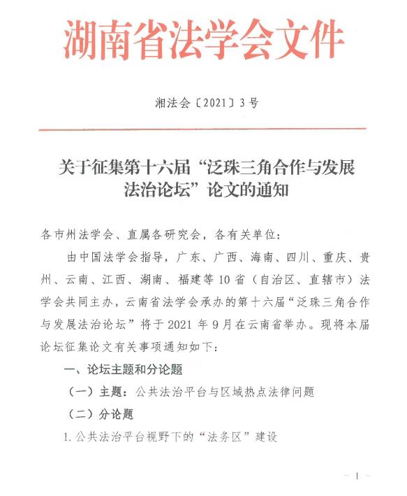 关于征集第十六届“泛珠三角合作与发展法治论坛”论文的通知