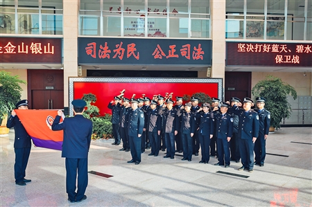 “作为新时代的司法干警,我们应始终以人民为中心,在平凡而神圣的岗位上恪尽职守、努力工作。法槌起落捍卫人间正道,走家串户力求定分止争,临危不惧坚定保障执行,初心不改守护公平正义……”