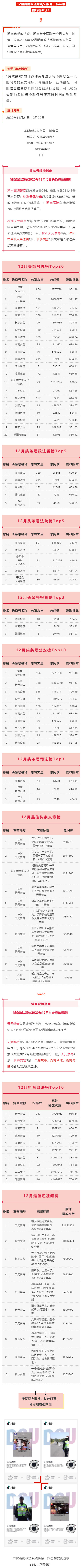 湖南政法系统头条号、抖音号2020年12月榜单