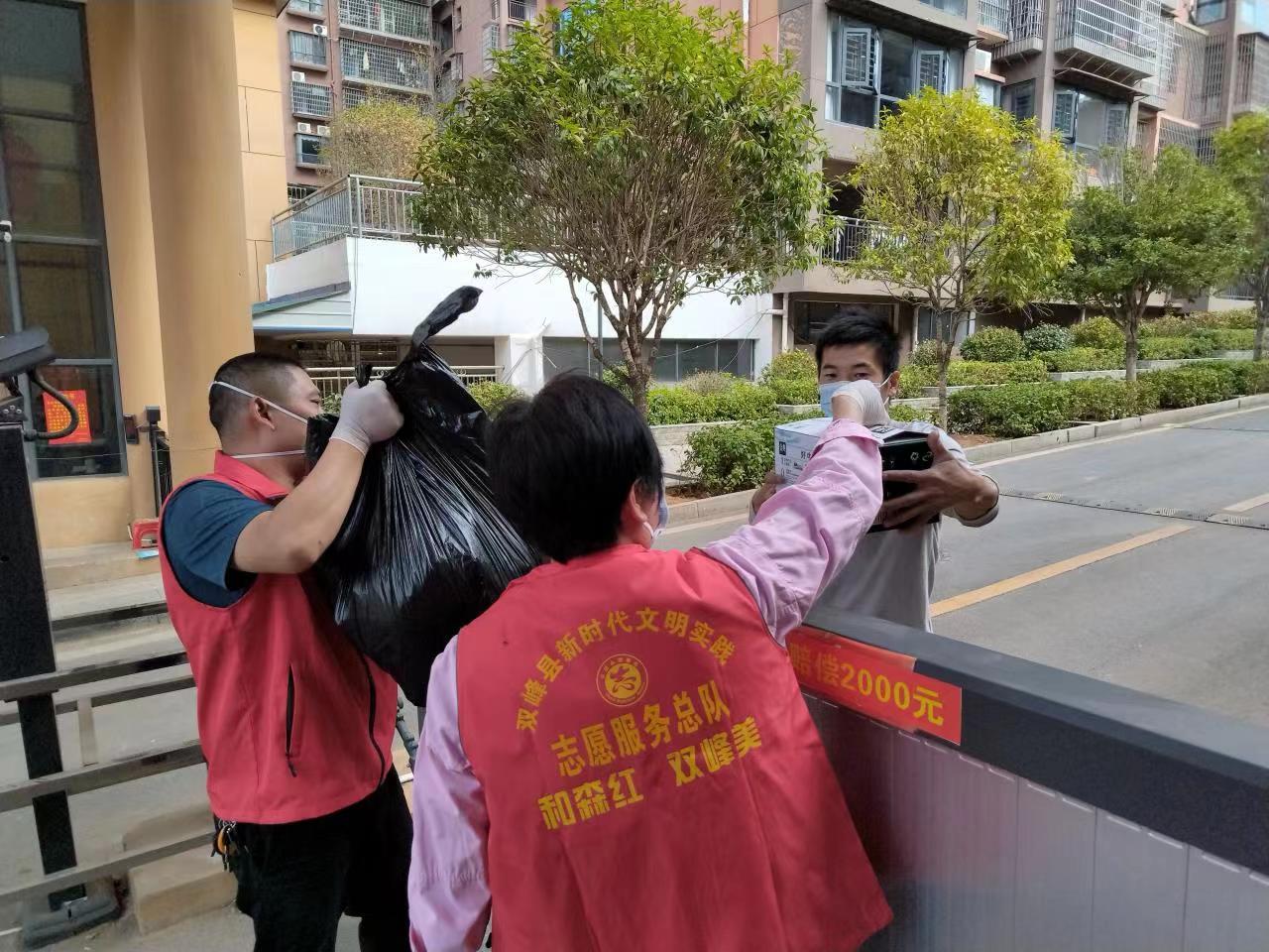 示范带动以文塑行。在全县范围内持续打造和森路上“和森红”品牌,传承红色基因,赓续红色血脉,把和森精神融入志愿服务。印发《双峰县“和森红”志愿服务积分制管理实施办法(试行)》,完善了“和森红”志愿者奖励机制,并在“志愿娄底”小程序上对志愿者进行积分管理,形成人人参与、人人争当志愿者的良好氛围。在全县范围内广泛征集创建全国文明城市的意见建议,开展创建全国文明城市(县级)主题歌曲和“和森红”志愿服务者主题歌曲征集,开展创建文明城市摄影比赛,提升群众参与度。全县建立了311支“和森红”志愿服务队伍,共10.6万余名志愿服务者。建立环保、消防应急、安全生产、文明劝导等多种专业志愿者队伍,志愿者服务队主要由小区党员、县直和街道在职党员干部、离退休党员干部、村(社区)两委干部、各类志愿者组成,为小区居民提供政策宣讲、疫情防控、法律援助、平安建设、扶贫帮困、环境整治、应急管理等服务,扎扎实实为群众做好事、办实事、解难事,为推动小区精细化管理起到了不容小觑的作用。如中央华府在今年7月22日-23日两天期间,组织小区志愿者对小区进行了一次彻底的环境卫生整治活动,共清理了60余车垃圾和10多处小区藤蔓、枯枝败叶160余袋。