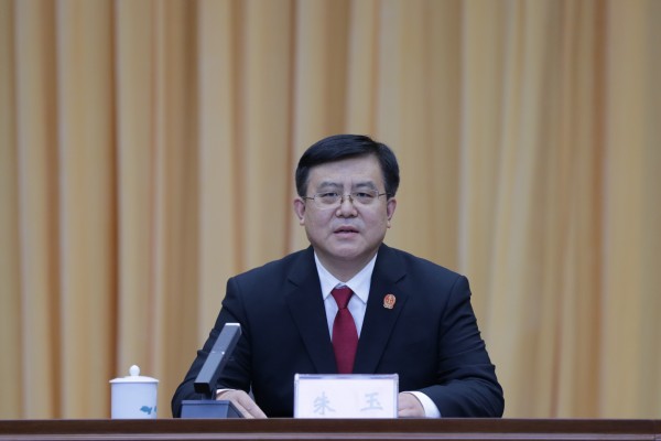 湖南高院党组书记、院长朱玉讲话。