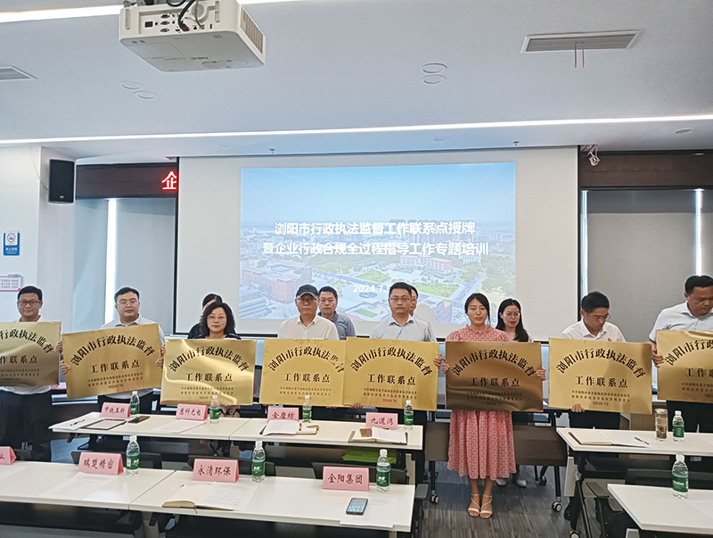 为创新行政执法监督方式,拓宽涉企行政执法问题线索征集渠道,进一步优化法治化营商环境。7月5日,浏阳市司法局联合浏阳经开区组织召开浏阳市行政执法监督点授牌暨企业行政合规全过程指导工作专题培训会议。会上,对中铁五新重工有限公司等15家“浏阳市行政执法监督工作联系点”企业进行授牌。