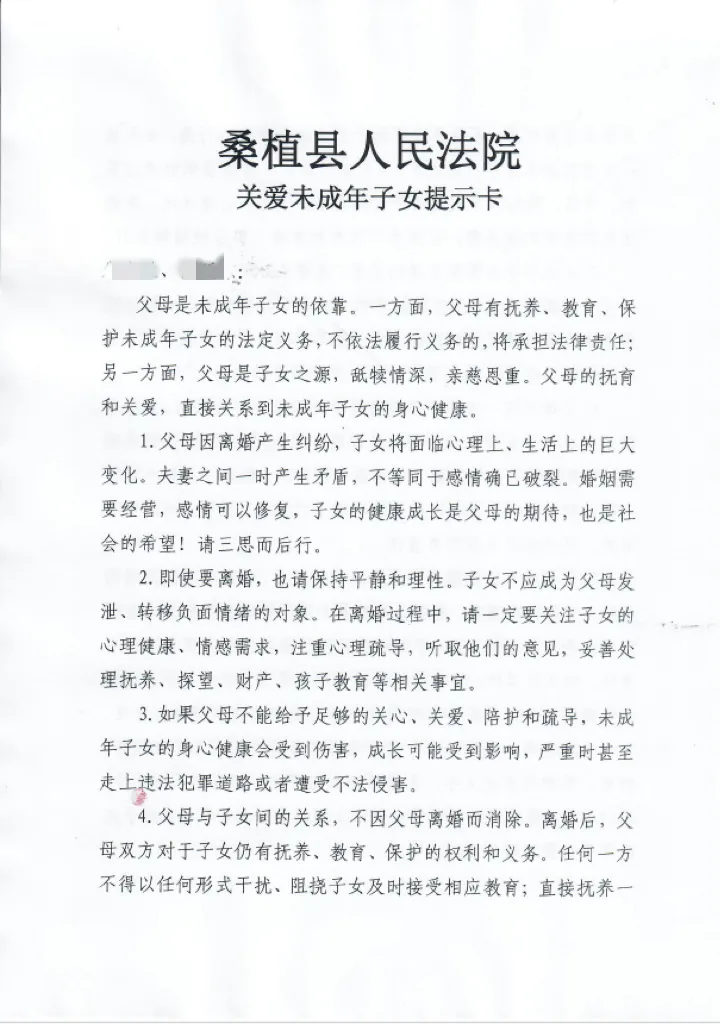 高效!最高院意见发布当日,桑植法院发出《关爱未成年人提示卡》