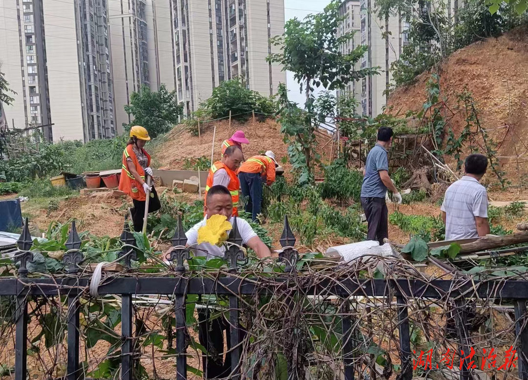 文章来源:湖南法治报 作者: 时间:2023-07-18 09:53:27为保卫蓝天,改善市容环境,提升居住品质,积极响应天心区“百日攻坚”的号召,7月15日,长沙市天心区新开铺街道新开铺社区各网格联合街道城管执法中队开展专项整治行动,对辖区违规种菜进行处置。并及时对清理过后的裸露土地进行绿网覆盖,防止扬尘污染以及后期违规种菜反弹,切实提高了小区居民的生活舒适度。