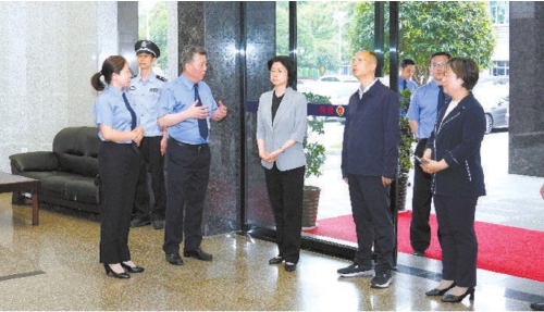 2023年5月16日,湖南省检察院党组书记、检察长叶晓颖(右三)到长沙市芙蓉区检察院调研,详细了解案件办理、便民服务、队伍建设等工作情况。