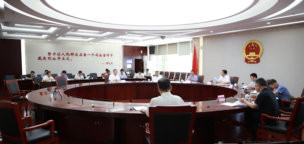 文章来源:湖南省高级人民法院 作者: 时间:2023-07-11 11:13:507月10日,湖南高院召开党组会议,传达学习省委常委会(扩大)会议暨全省“走找想促”活动第二次调研情况交流会议精神,研究贯彻落实意见。湖南高院党组书记、院长朱玉主持会议并讲话。