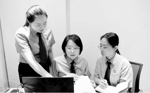 办案检察官研究讨论案件情况。