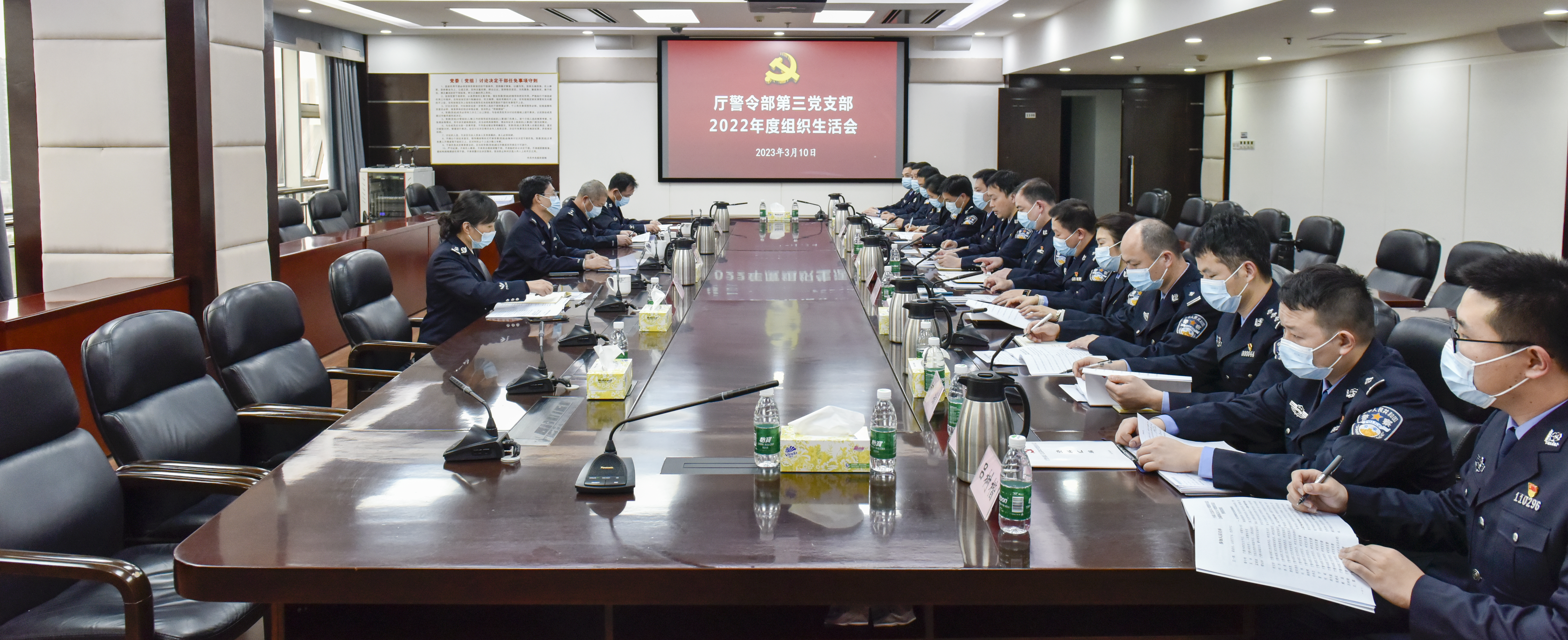 3月10日下午,副省长、公安厅长王一鸥以普通党员身份参加厅警令部研究室党支部2022年度组织生活会,与支部成员谈心交流,听取意见建议,勉励支部提高政治站位,进一步加强党的建设,将强大的组织力转化为战斗力,推动支部党员民警不断深化学习、增强能力素质、深入调查研究,更好地发挥参谋服务作用,为推进全省公安工作高质量发展作出新的更大贡献。厅警令部负责人、二级警务专员吴冰,厅机关党委专职副书记、二级巡视员孟晓丽,厅警令部副主任、警令部党总支副书记缪壮林参加会议。