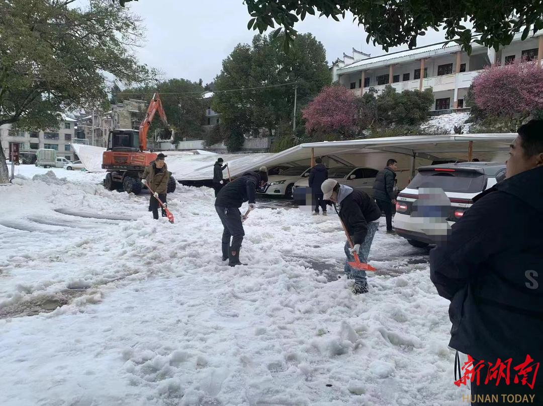 2024年2月3日,芙蓉镇遭遇百年一遇的冰灾,河畔社区集体经济停车场发生大面积钢架倒塌事故,造成28台车辆不同程度受损,其中4台为外地游客。