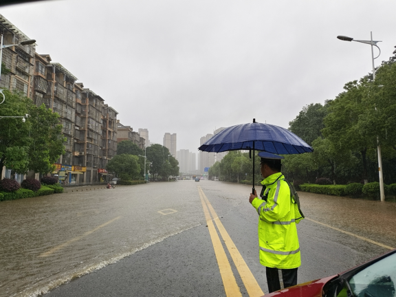 6月24日上午,湖南株洲市区因强降雨导致路面出现积水情况。越是艰险越向前,株洲公安交警在积水路段设立反光锥筒,清除路面障碍物,坚守一线,疏导交通,引导驾驶员绕行,全力以赴护航道路交通安全、有序、畅通。
