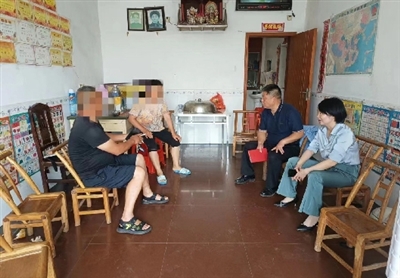 唐春(右1)到群众家中沟通交流了解情况。