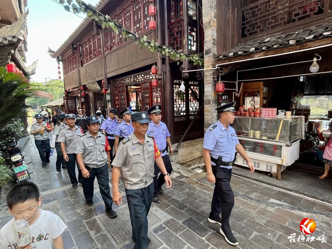 近日,在花垣县边城镇景区、十八洞景区,由派出所民辅警和景区保安组成的联防巡逻队成为了一道靓丽的风景线。
