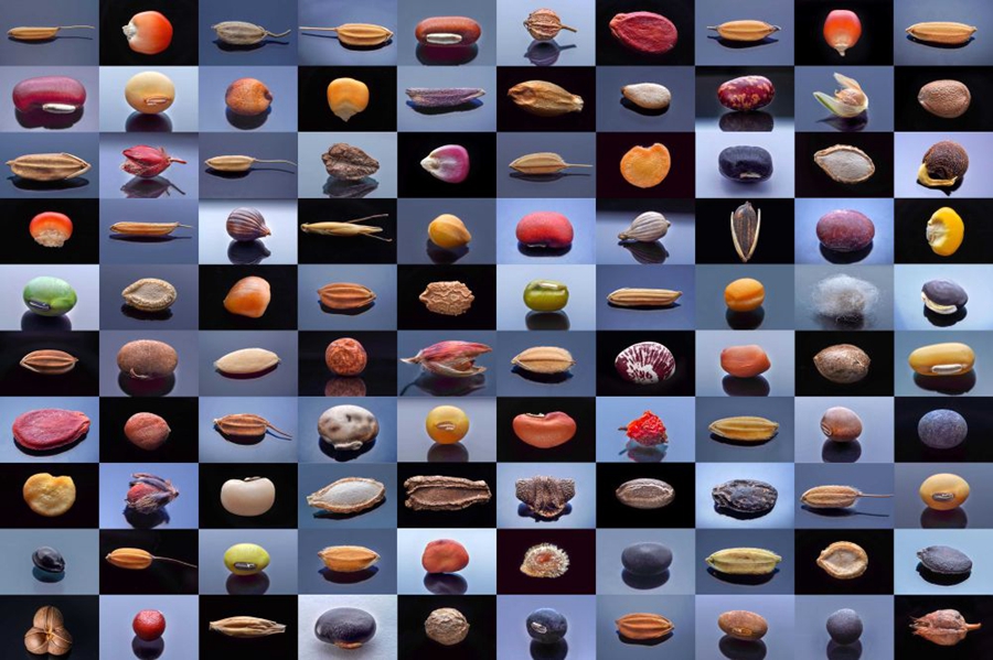 微距镜头下,湖南省农作物种质资源库的种子千姿百态(100个种子拼版照片)。