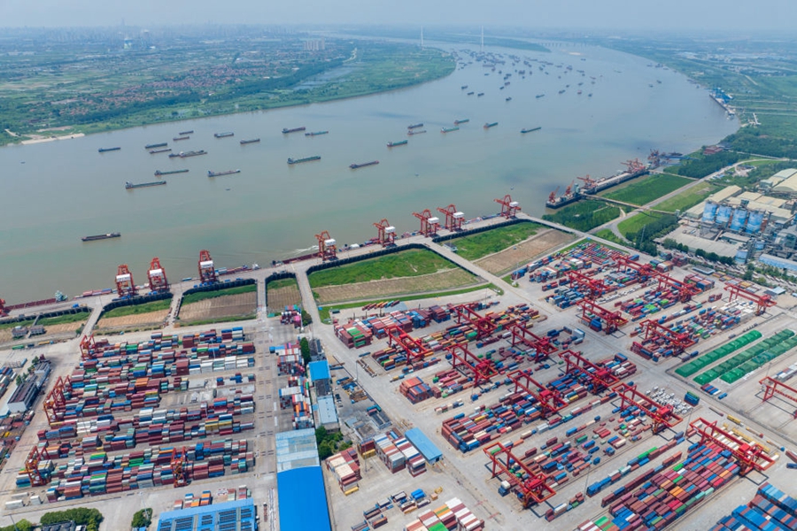 2023年7月5日拍摄的武汉阳逻港一期码头(无人机照片)。