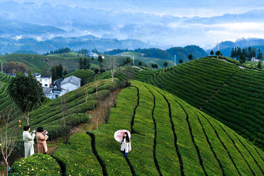 2023年12月6日,游客在湖北省鹤峰县走马镇木耳山茶园观光。近年来,鹤峰县在发展壮大茶产业的同时,积极探索茶旅融合发展之路,打造多片集采摘、观光于一体的万亩茶园,让茶农实现“茶旅双丰收”,助力乡村振兴。
