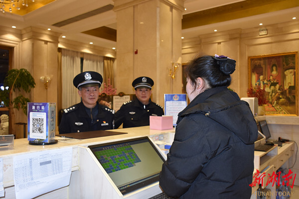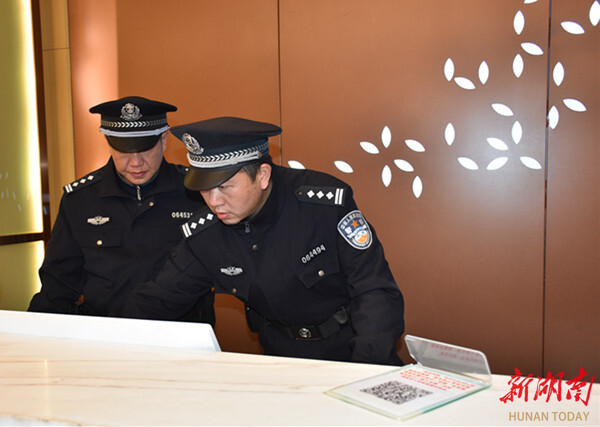 “您好,请出示一下入住人员登记簿……”在一家宾馆内,民警正对该宾馆实名登记、消防安全等内容逐项进行详细检查,规范行业场所治安管理,全力消除各类安全隐患。