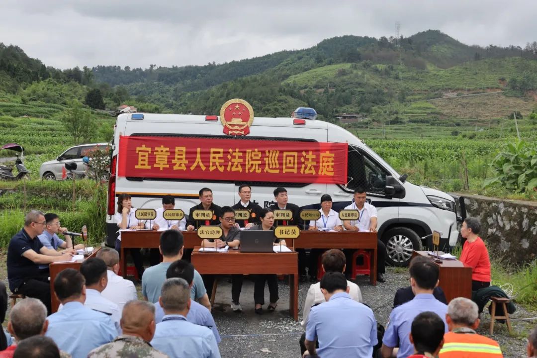 文章来源:宜章县人民法院 作者: 时间:2024-05-24 15:18:18近日,湖南省宜章县人民法院党组书记、院长刘思含担任审判长,同其他两名法官、四名人民陪审员组成合议庭,将巡回法庭开进宜章县里田镇上渡村,在案发地公开审理了一起生态环境保护民事公益诉讼案。