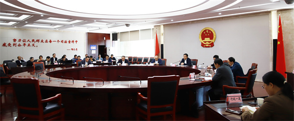 会议要求,要结合工作实际,扎实推动习近平总书记考察湖南时的重要讲话和指示精神落实落地。要把政治建设摆在首位,坚持不懈用习近平新时代中国特色社会主义思想凝心铸魂,巩固拓展主题教育成果,推动党史学习教育常态化,坚持党对法院工作的绝对领导,牢牢把握全省法院正确政治方向。要坚持能动司法,努力做实为大局服务、为人民司法。要进一步推深做实“五项重点工作”,树牢总体国家安全观,坚定维护国家政治安全,狠抓常态化扫黑除恶,惩防并举治理突出犯罪,助力建设更高水平平安湖南;认真落实“三高四新·法治护航”行动部署,深入开展知识产权“高质量·严保护”专项行动,持续深化优化法治化营商环境三项专项行动,服务保障经济高质量发展;大力弘扬社会主义核心价值观,以公正裁判引领社会风尚,妥善审理民生案件、办好民生实事,切实保障和改善民生;持续开展环境资源审判“飓风行动”,深化跨区域环境资源司法协作,加强生态环境司法保护;坚持和发展新时代“枫桥经验”,积极融入党委领导的社会治理大格局,积极抓好诉前调解、司法建议、普法宣传等工作,推进健全社会治理体系。要把握“公正与效率”主题,全面深化司法改革,大力推进审判工作现代化,努力让人民群众在每一个司法案件中感受到公平正义。要加强和改进自身建设,深入开展党纪学习教育,做深做实全员全时全面考核,加大专业化司法人才培养储备力度,持续深化整治形式主义为基层减负,着力打造忠诚干净担当的湖南法院铁军。