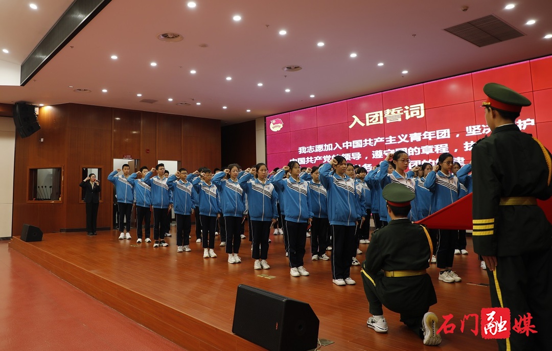 活动中,少先队员代表进行了献辞,与会领导为50名新团员颁发团徽徽章、团员证和团章,新团员们向团旗庄严宣誓正式加入中国共产主义青年团,优秀青年代表分享了青春故事,充分展现了石门青年的时代风采和精神风貌。