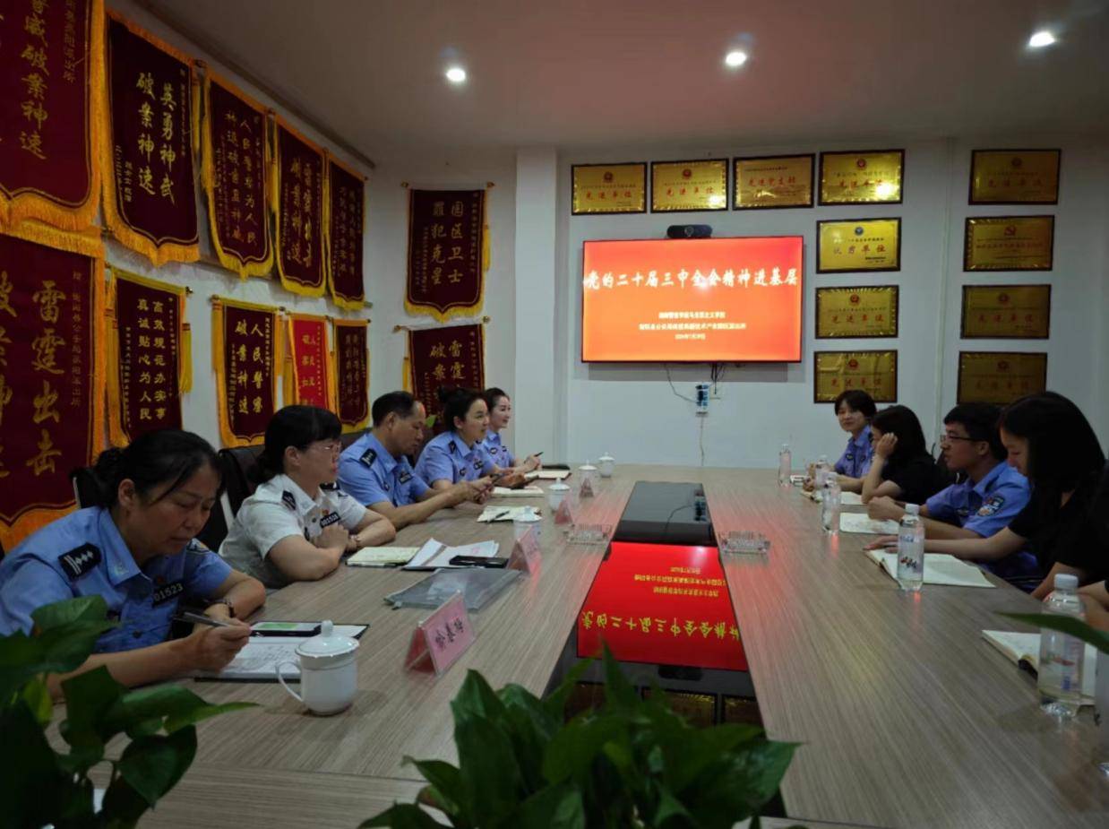 文章来源:湖南长安网 作者: 时间:2024-08-01 15:36:43湖南长安网8月1日讯 为更好学习贯彻党的二十届三中全会精神,服务基层公安部门进一步全面深化改革,7月29日,湖南警察学院马克思主义学院组织师生深入基层派出所宣讲党的二十届三中全会精神。