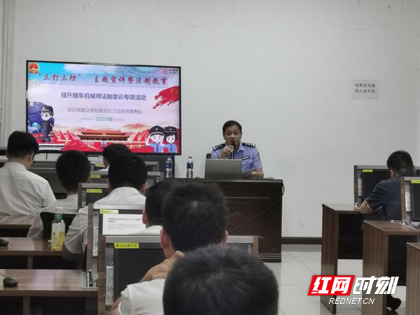 红网时刻新闻8月8日讯(记者 刘力 通讯员 李志勇 谢敏)8月7日,广州动车段长沙动车运用所邀请长沙铁路公安处乘警支队副支队长刘颖智到长沙动车所开展普法宣讲座。动车所副主任、乘务队长、随车机械师等50余人参加普法宣传讲座。