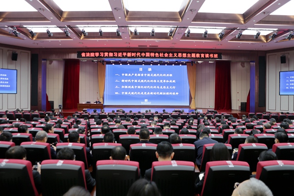 省法院党组对本次读书班高度重视,党组书记、院长朱玉作了动员讲话暨辅导报告,邀请了省社科院(省政府发展研究中心)党组成员、副院长(副主任)汤建军,省委党校经济学教研部教授戴军为全院干警分别围绕党的二十大报告热点解读,推动高质量发展作专题讲座。党组中心组(扩大)开展“以学铸魂”专题研讨,各党支部深学热议。