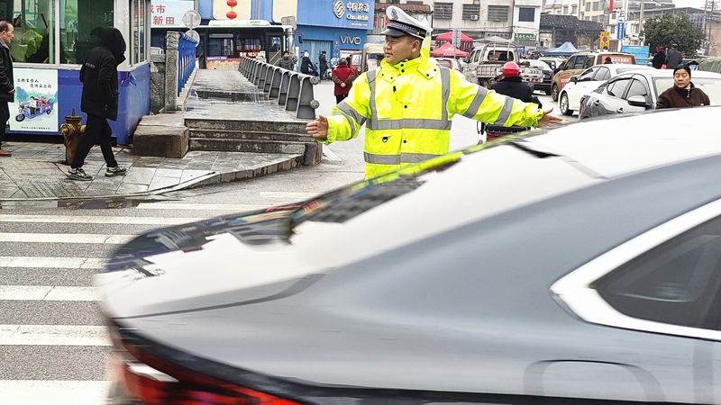 “请大家遵守交通法规,人多车多,请不要加塞、不要随意变道,安全行驶……”2月8日,新田县公安局交通管理大队根据辖区实际,提前分析研判易堵路段,积极调整勤务模式,合理安排警力,结合道路交通实际和节前交通特点,将警力全部下沉一线,在早、晚高峰时段,全警参与路面执勤,全力确保春运、春节期间道路交通秩序安全、畅通、有序。