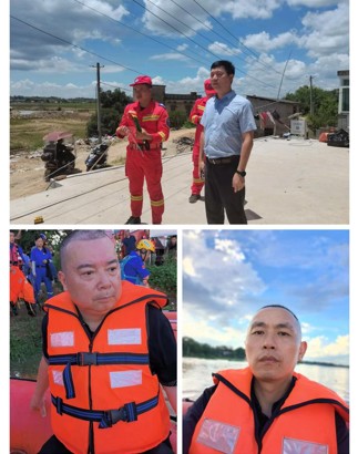 为第一时间抢险救灾,县委政法委兵分三路赴受灾乡镇支援。县委常委、政法委书记肖睿来到易俗河镇四新堤决口察看汛情,转移受灾群众,指导抢险救灾。县委政法委副书记陈大伟带队前往受灾最严重的河口镇华中村,他来到洪水边察看水情,安慰受灾村民,登上冲锋舟到洪水中挨家挨户开展搜救。县委政法委副书记张科带队前往易俗河镇新塘村,组织转移安置受灾群众。