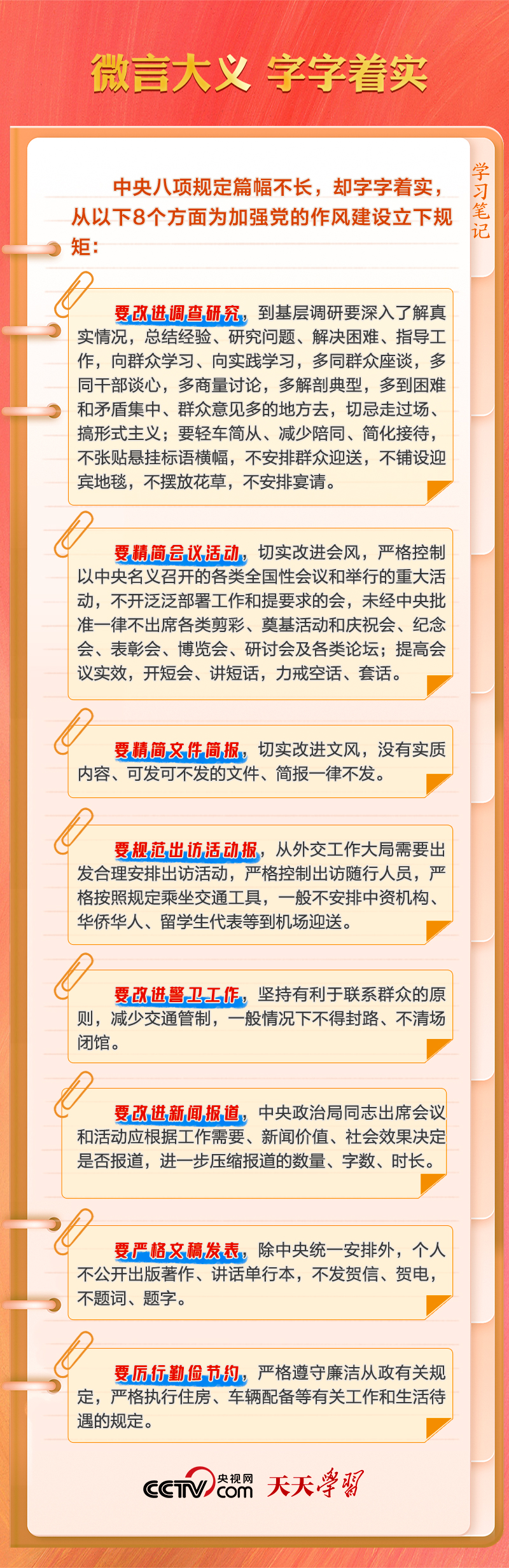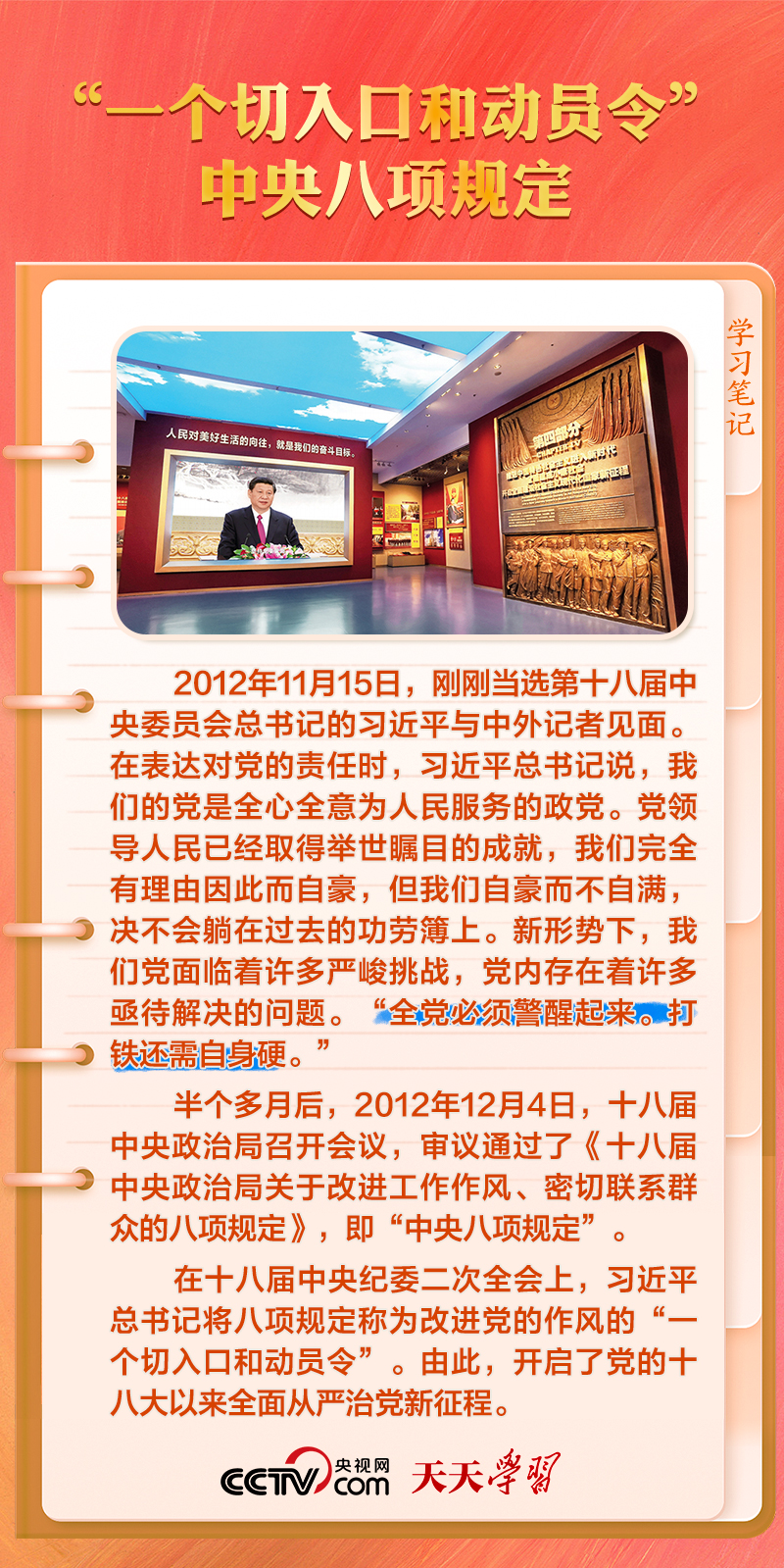 央视网《天天学习》栏目与您一起了解中央八项规定及其给中国带来的深刻影响。