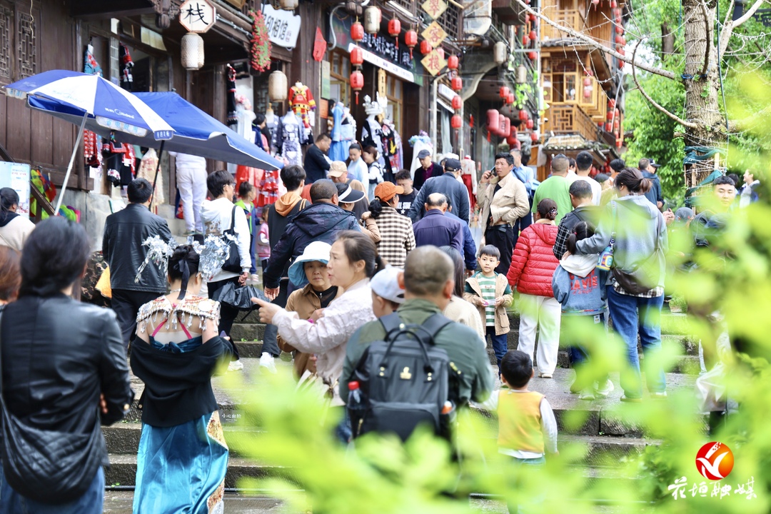“五一”假期,边城茶峒景区人气爆棚,不管是翠翠岛还是老街小巷,满眼都是“人从众”,游客们在假期里感受这座小镇的独特魅力。为确保游客安全出游,花垣公安围绕景区重点区域及人员密集场所加强巡逻防范,为景区提供了一个安全、有序的游玩氛围。