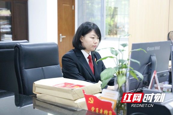 工作中的衡阳中院立案信访局副局长邓婕晖。