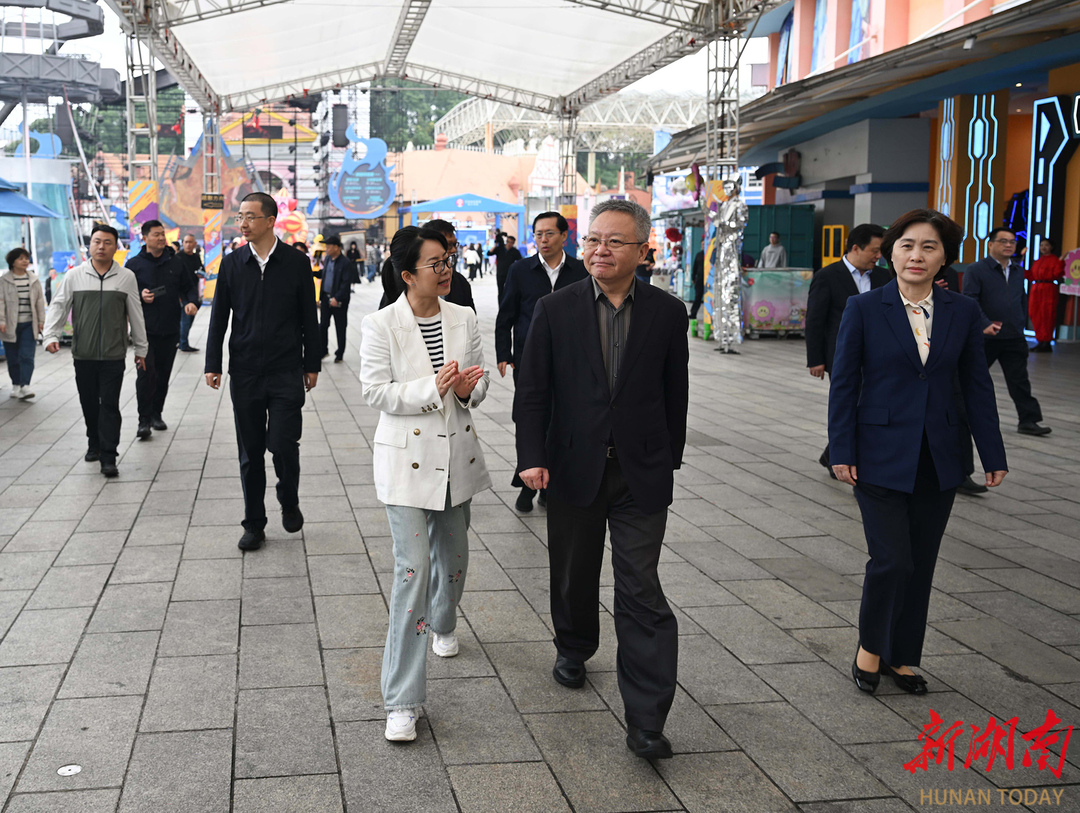 (5月1日,沈晓明来到长沙世界之窗察看游乐设施安全使用情况,听取景区运营情况介绍。)