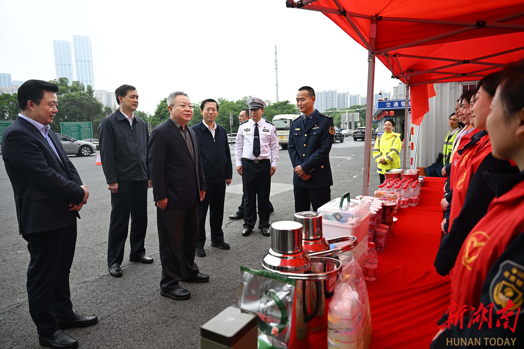 京港澳高速雨花收费站是连接京港澳高速、机场高速、高铁南站、黄花机场的重要交通枢纽,也是经京港澳高速进入长沙市城区最快捷的主要通道,车流量大,保畅任务重。沈晓明来到该收费站,了解高速公路保安全、保畅通情况,看望执勤民警和志愿者,向大家致以节日问候。他指出,要加强分析预判,通过技术创新优化交通组织、提高通行效率、减少交通隐患,更好地为司乘人员提供出行便利。